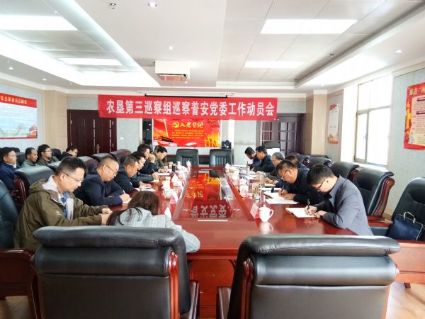 10月15日上午,農(nóng)墾集團公司黨委第三巡察組在甘肅普安制藥股份公司召開巡察工作動員會議,集團公司黨委第三巡察組組長李松山、副組長李昌,巡察組成員史文煊、丁爾斌出席會議。公司黨政領(lǐng)導(dǎo)班子成員、干部職工40多人參加了會議。