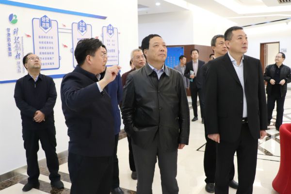 閆希軍一行先后來到隴神戎發(fā)藥業(yè)股份有限公司、甘肅藥業(yè)集團科技創(chuàng)新研究院、蘭州肽谷研究院、現(xiàn)代中醫(yī)藥健康產(chǎn)城融合項目擬建地、甘肅中藥材交易中心、現(xiàn)代化“智能云倉”、首陽江能中藥材交易市場、甘肅隴藥標(biāo)準(zhǔn)化生態(tài)產(chǎn)業(yè)園等地考察調(diào)研。考察中,閆希軍一行認真聽取了有關(guān)方面關(guān)于企業(yè)發(fā)展、項目謀劃以及產(chǎn)品研發(fā)等情況介紹,就做精做優(yōu)中藥材全產(chǎn)業(yè)鏈、推動甘肅中醫(yī)藥產(chǎn)業(yè)高質(zhì)量發(fā)展交換了意見。