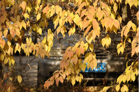 深秋,風兒起,葉兒落。那一片一片紅黃相間的精靈,在清明的天空,裊裊娜娜,身姿曼妙。