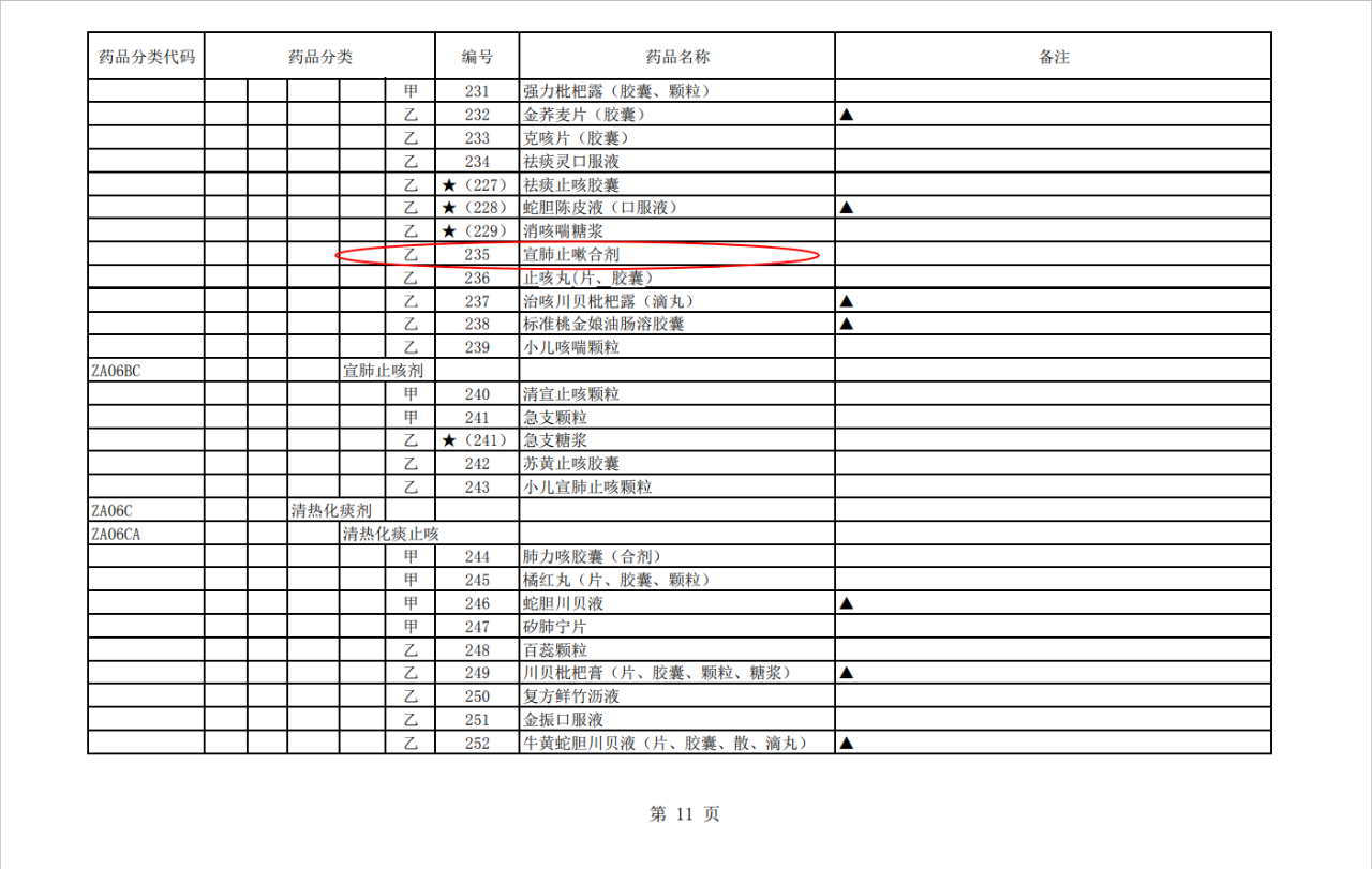 甘肅普安制藥股份有限公司主打產(chǎn)品宣肺止嗽合劑被納入中成藥部分,藥品分類代碼:ZA06BB,藥品分類:祛痰止咳劑乙類,編號(hào):235號(hào)。