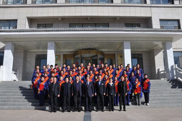 會議結(jié)束后,公司領(lǐng)導與受表彰人員在辦公樓前合影留念。