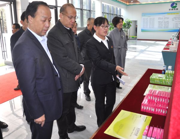 2月23日下午,省科技廳黨組書記、廳長張世榮一行到甘肅普安制藥股份有限公司調研公司科技、研發、生產經營、宣肺止嗽合劑擴產改造項目及醫藥中間體擬建項目等情況并指導工作。省科技廳黨組成員、駐廳紀檢監察組組長張慧春,中科院蘭州分院院長肖國青,武威市委副書記、市長周偉,武威市政府副市長唐修亞陪同調研。