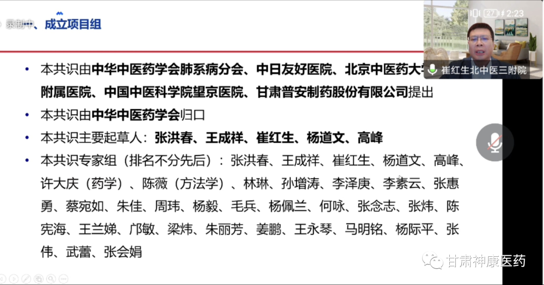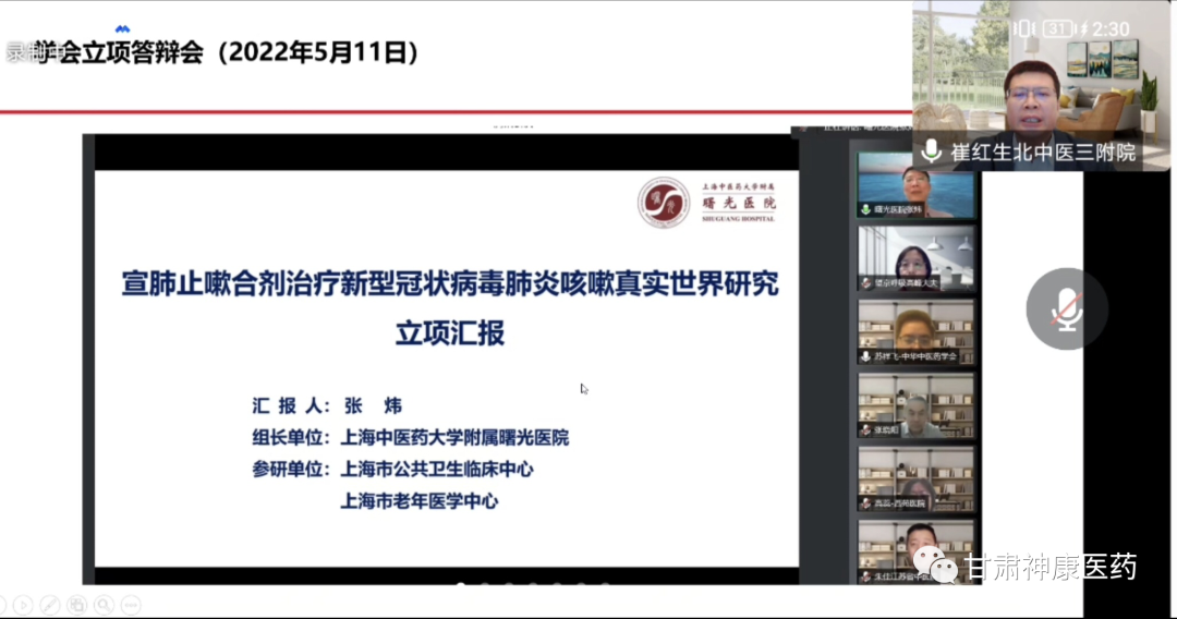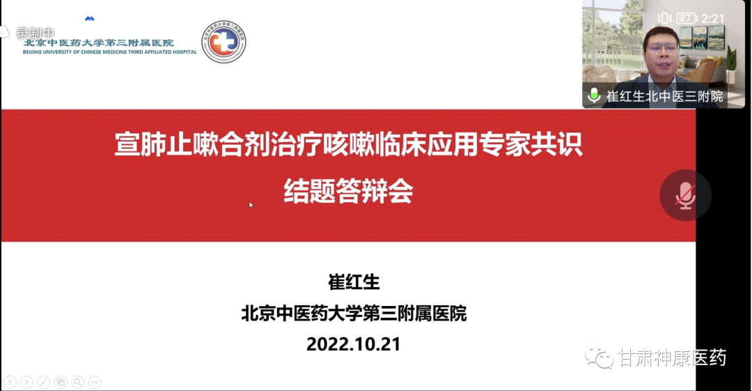 2022年10月21日下午,由中華中醫(yī)藥學(xué)會(huì)主辦,甘肅省普安制藥股份有限公司、北京康眾時(shí)代承辦的《宣肺止嗽合劑治療咳嗽臨床應(yīng)用專家共識(shí)》結(jié)題答辯會(huì)于線上舉行。中華中醫(yī)藥學(xué)會(huì)標(biāo)準(zhǔn)化辦公室負(fù)責(zé)人蘇祥飛主任,北京中醫(yī)藥大學(xué)第三附屬醫(yī)院王成祥院長(zhǎng)、北京中醫(yī)藥大學(xué)第三附屬醫(yī)院崔紅生教授、中日友好醫(yī)院楊道文教授、河南中醫(yī)大學(xué)第一附屬醫(yī)院劉向哲教授等專家學(xué)者出席會(huì)議,會(huì)議由蘇祥飛主任主持。