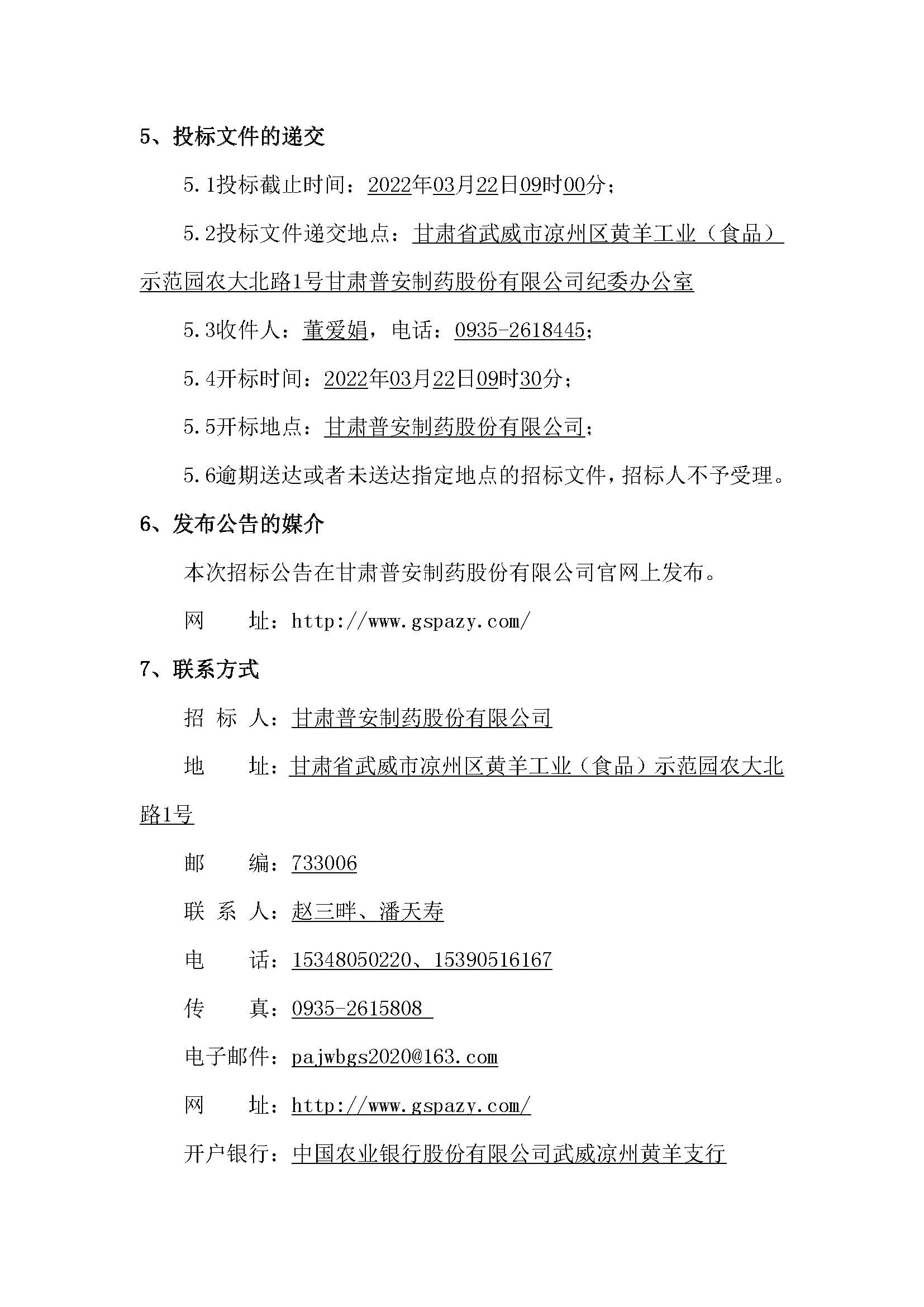 甘肅普安制藥股份有限公司年產5000萬盒(3億支)宣肺止嗽合劑等液體制劑生產線升級改造項目設計招標公告