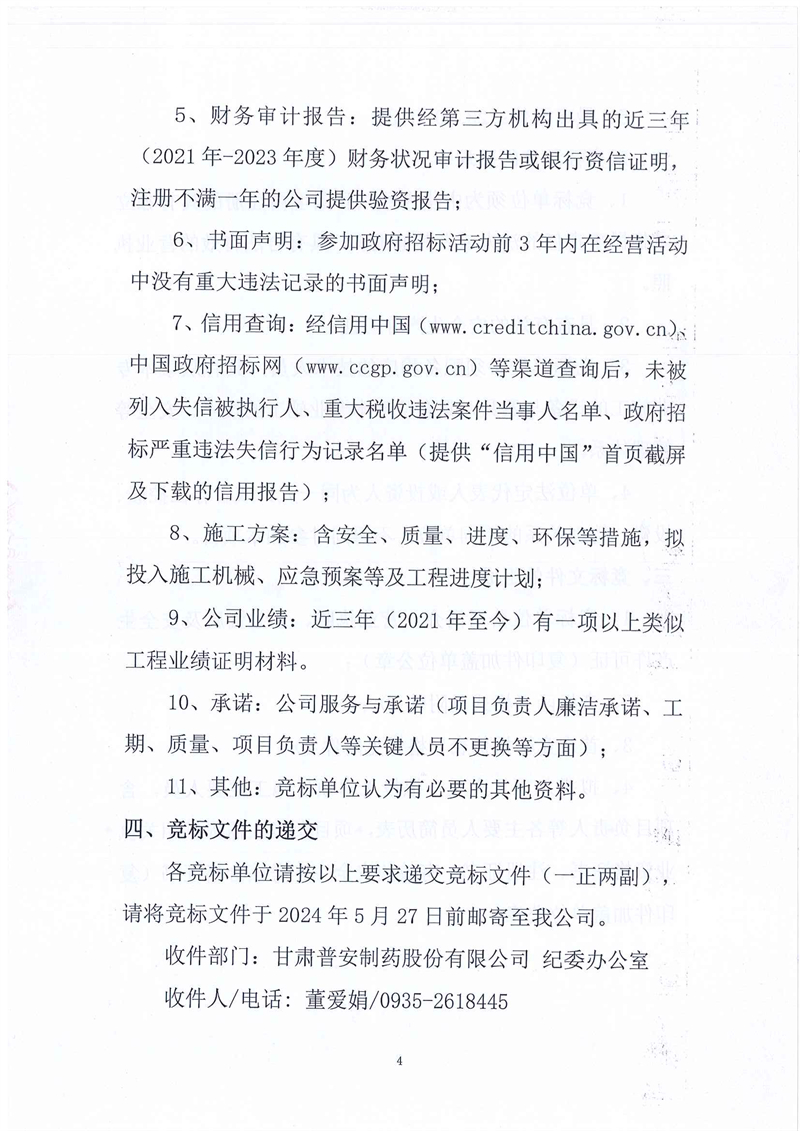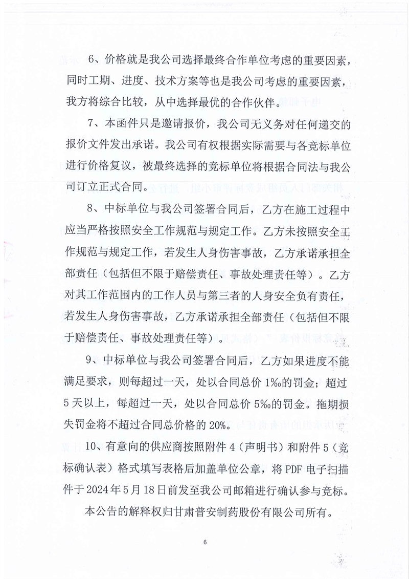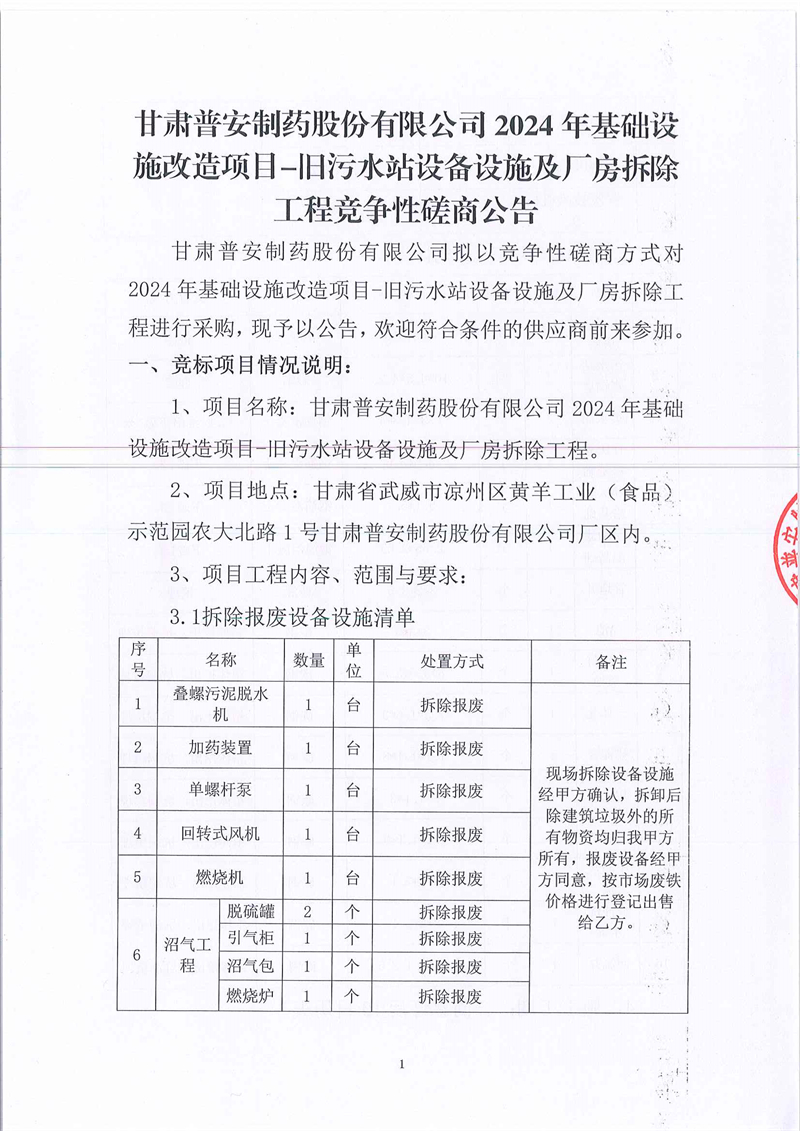 甘肅普安制藥股份有限公司2024年基礎(chǔ)設(shè)施改造項(xiàng)目-舊污水站設(shè)備設(shè)施及廠房拆除工程競爭性磋商公告