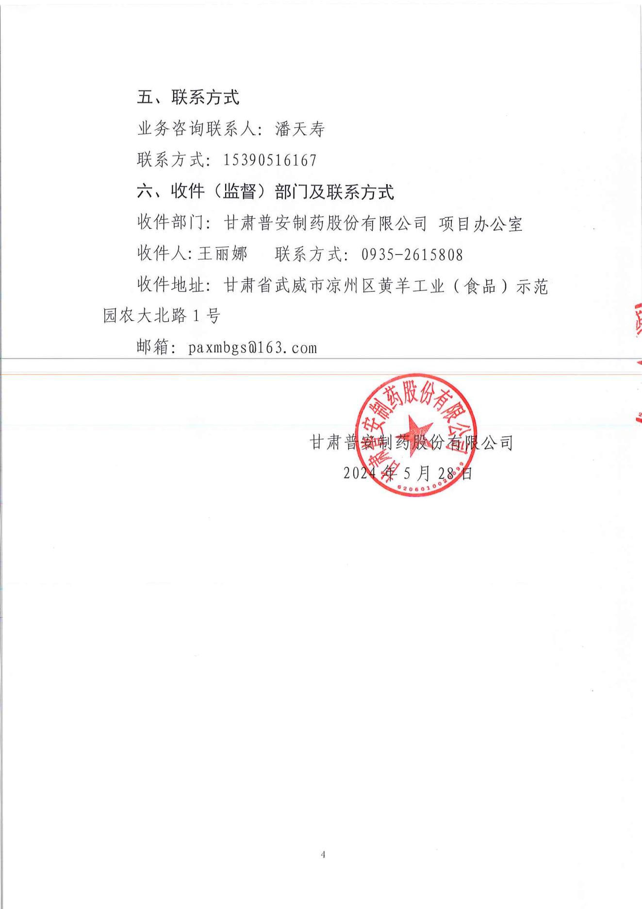 甘肅普安制藥股份有限公司2024年-2025年基礎(chǔ)設(shè)施改造項目結(jié)算審核服務(wù)招標(biāo)公告