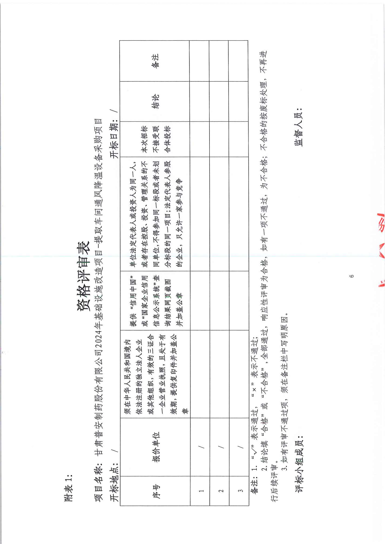 甘肅普安制藥股份有限公司2024年基礎設施改造項目-提取車間通風設備采購項目招標公告