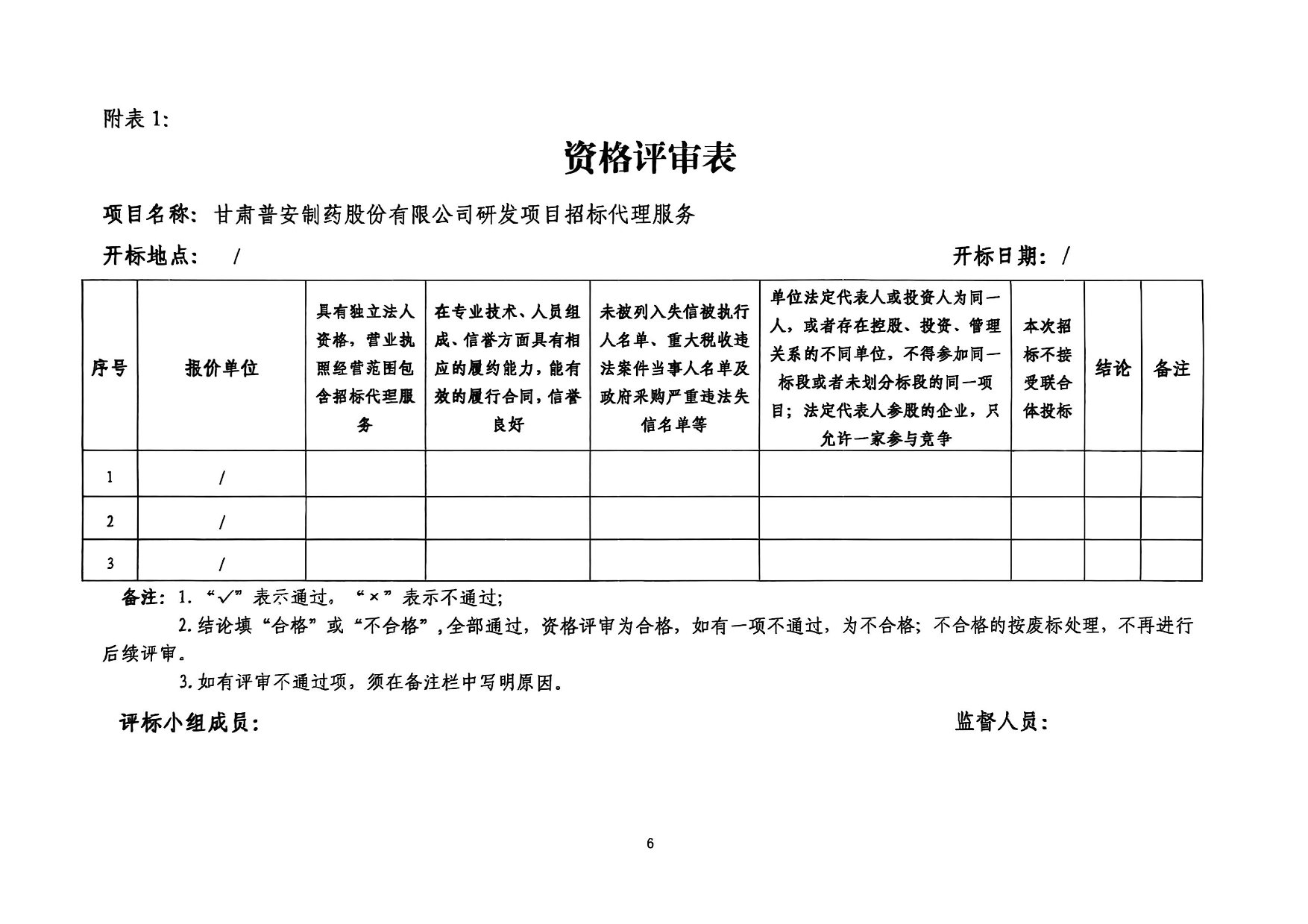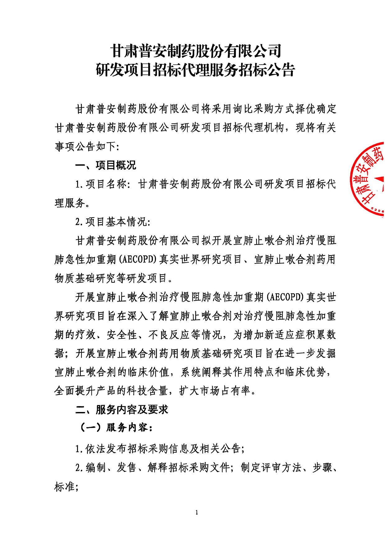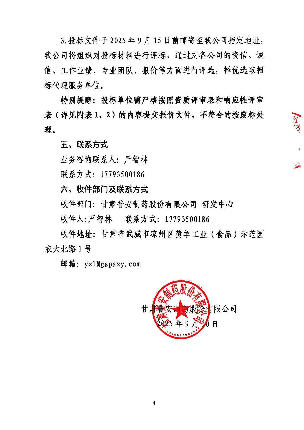 甘肅普安制藥股份有限公司研發(fā)項目招標代理服務(wù)招標公告