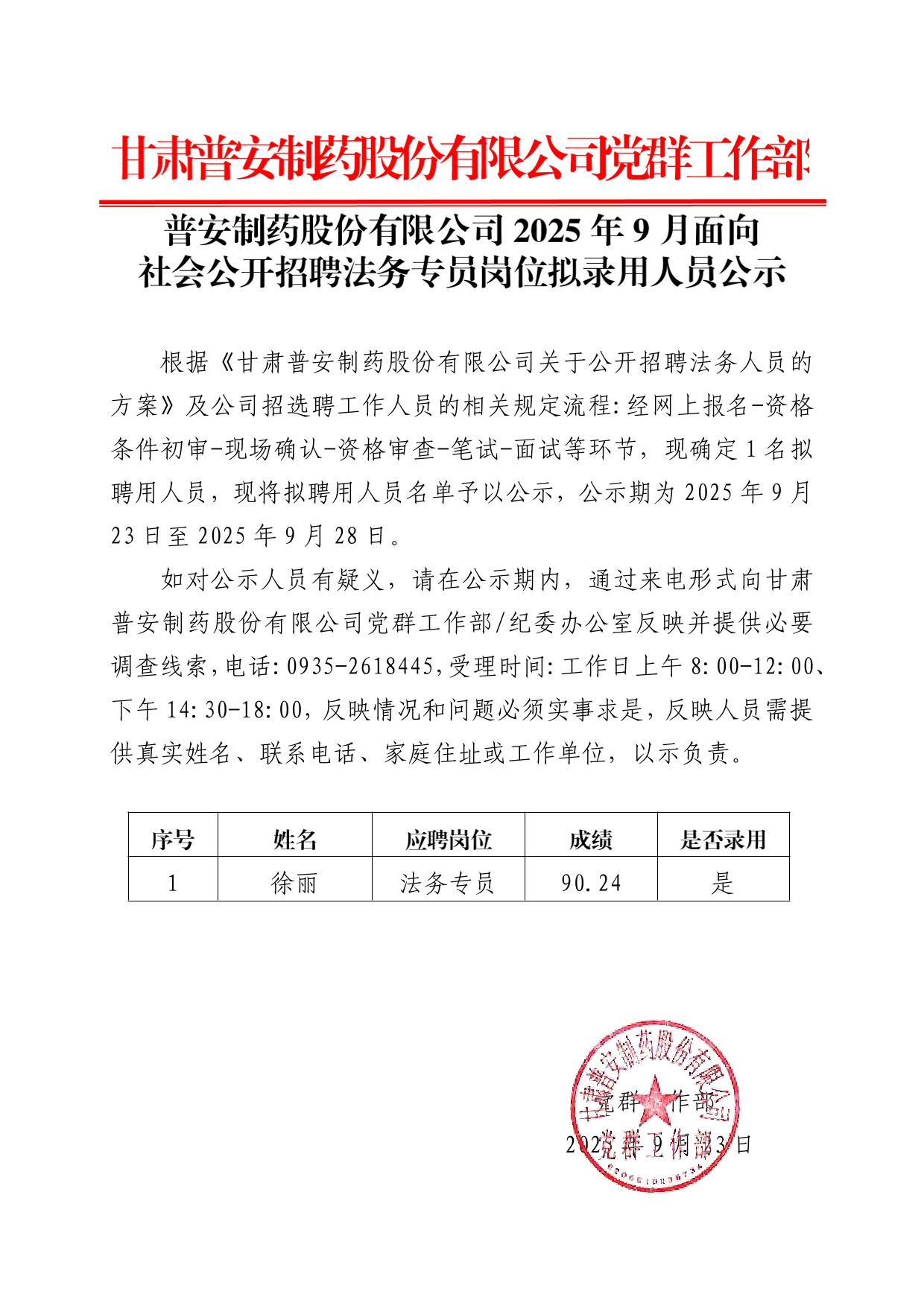 法務招聘結果公示